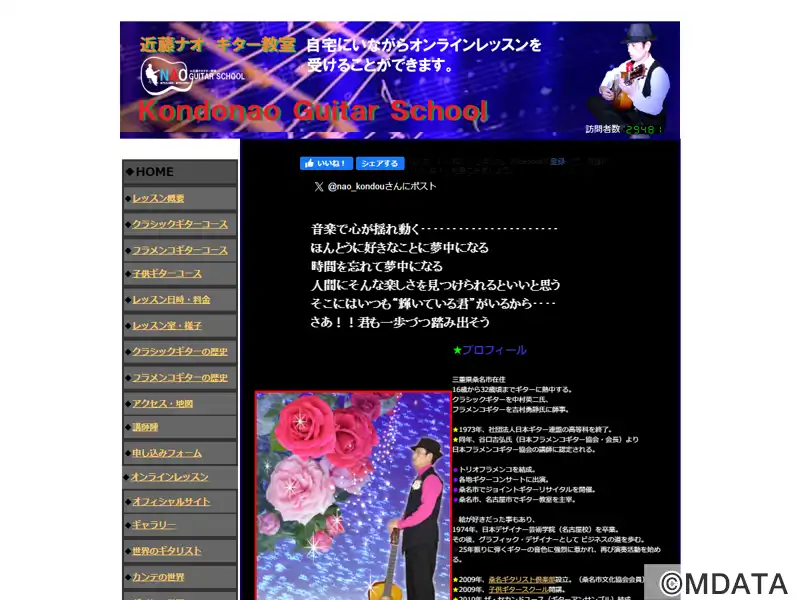 三重県桑名市にある、ギター奏者の近藤ナオ氏が指導する、フラメンコギター・クラシックギターのギター教室。初心者からプロ志向まで、個別カリキュラムによるマンツーマンレッスンで、正しいギターの弾き方から、ギターソロの演奏方法、アンサンブル演奏の楽しさを体験するまで、幅広いレッスン内容が用意されている。フラメンコギターを学ぶ際は、クラシックギターの基本奏法をマスターした後、独特のリズムや様々な奏法を学ぶ。