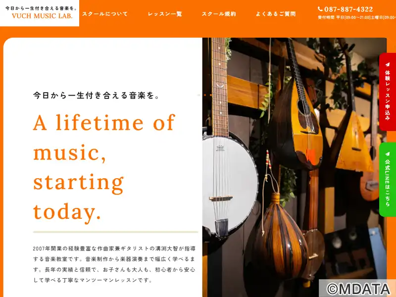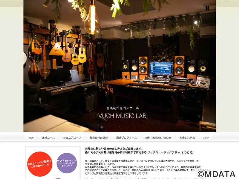 香川県高松市に2007年に開講した音楽制作スクール。初心者からプロを目指す方までを対象に、DTM・作曲・ギターの3コースを開講。実践的なDAW機材や音楽環境を整え、多くの生徒がスキルアップと音楽性の向上を達成。DTMコースでは、Cubaseを使用した楽曲制作やミックスが学べる。作曲コースでは、オリジナル曲の制作方法をトータルで学ぶ。また、ギターコースではギターの基本的なフォームから学ぶことができる。