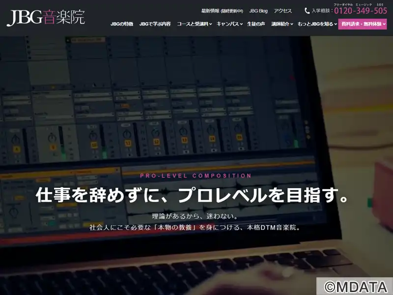 東京世田谷区の池尻にあるDTM作曲スクール。体系的な音楽理論を習得し、最前線のDTM・作曲スキルを学べるトレーニング型授業。音楽の基礎教養を身につける「コアプログラム」により、音楽初心者でも着実にスキルアップできる。アナログも重視しつつ最新トレンドに沿ったカリキュラムを提供し、実践的な音楽制作やレコーディング技術を学べる。また、社会人に適した平日夜間と土日開講で、授業録音や振替制度も設けている。