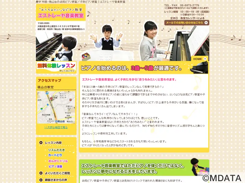 大阪府豊中市にある、2歳・3歳の幼児から小学生を対象にしたピアノ教室。子供たちが音楽を自然に楽しめるよう、遊びを取り入れたレッスンを行っている。リズムたたきやカード遊びなど、リズム感や音感を育むための工夫を取り入れ、五線譜の学習も遊びを通じて行っている。生徒一人ひとりの個性に合わせた指導を心がけ、精神的な成長も重視している。親子のコミュニケーションも大切にし、教室の雰囲気を知る機会も提供している。