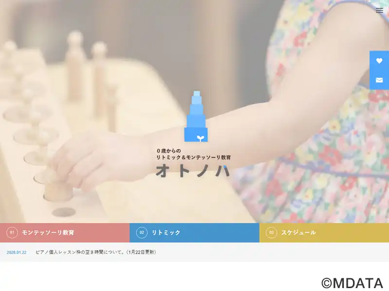 岡山市中区平井に位置する音楽教室で、リトミック研究センター認定教室として、0歳から6歳までの幼児に対してモンテッソーリ教育やグランドピアノによるリトミックレッスンを提供している。また、ピアノやエレクトーン、ソルフェージュの個人レッスンも行っており、保育士を目指す人向けの専門的なレッスンも可能。希望により少人数グループレッスンや絵画教室など特別レッスンも開講。無料体験レッスンの予約も受け付けている。