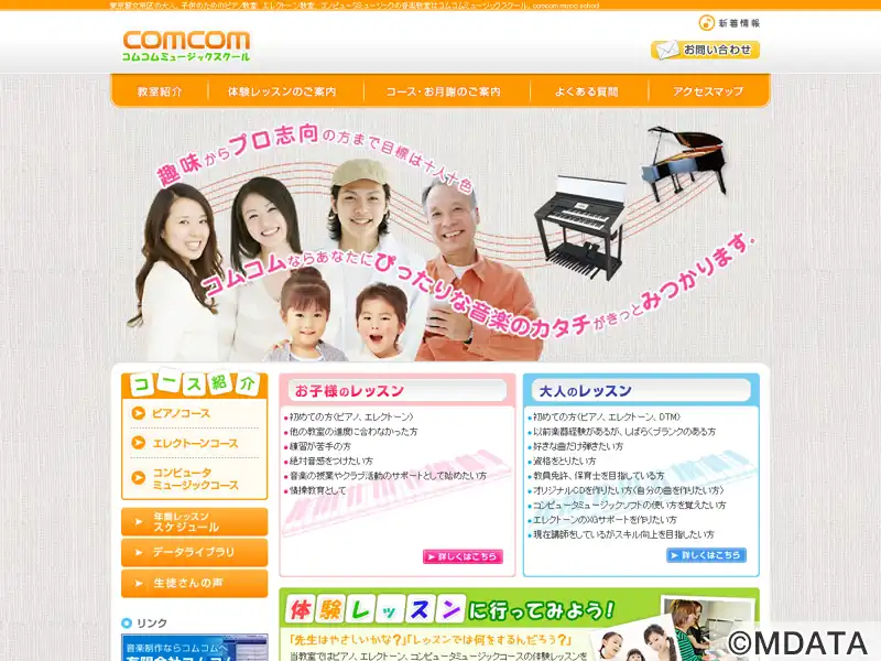 東京都文京区にある音楽制作会社・コムコムが運営する音楽教室。ピアノ、エレクトーン、コンピュータミュージックの各コースを提供し、初心者からプロ志向の方、子どもからシニアまで幅広く対応している。「音楽は楽しく」をモットーに、一人ひとりの個性や目標に寄り添ったマンツーマンレッスンを重視。発表会やイベント、コンクールへの参加機会も充実しており、楽しみながら着実に成長できる環境が整っている。音楽を通じて心を豊かにすることを目指している。
