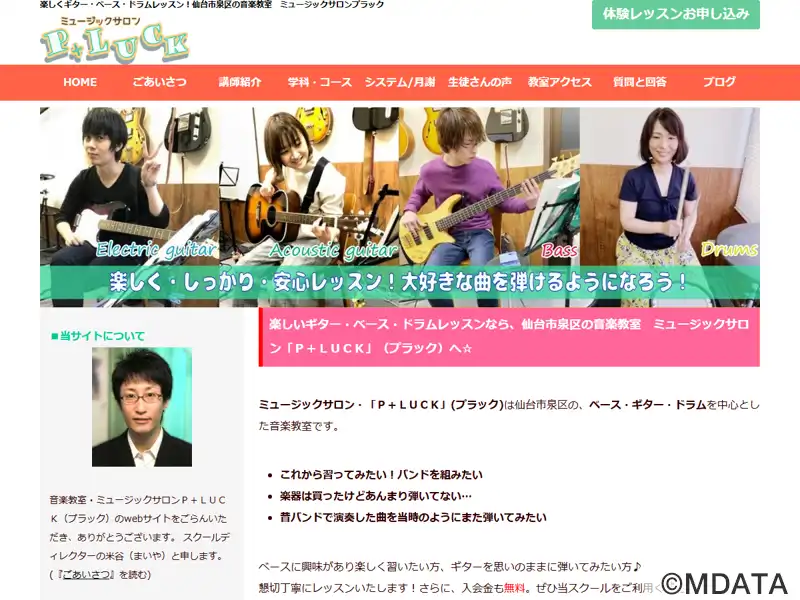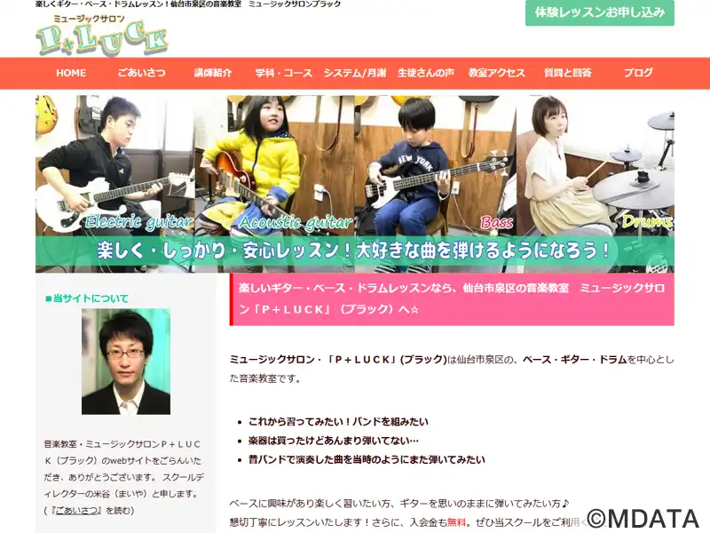 仙台市泉区にあるアットホームな音楽教室。ギター、ベース、ドラムを中心に、個別レッスンでそれぞれの「やりたい曲」やペースに合わせた柔軟なカリキュラムを提供。ポップスやロック、オールディーズ、アニメソングなど、幅広いジャンルで、初心者から経験者まで対応。講師は親しみやすく経験も豊富で、基礎からじっくり学びたい方にも安心。楽器のレンタルやスケジュールの調整もしやすく、自分のペースで音楽を楽しめる環境が揃う。