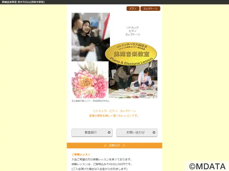 取手駅前のリトミック・ピアノ・エレクトーン教室。1歳からのリトミック(リトミック研修センター認定教室)、音符ビッツによるソルフェージュ、一音会江口メソッドによる絶対音感を指導しています。中学生からはコードネームを使ったポピュラーピアノも体験できます。初心者の方、熟年の方にはゆっくりわかりやすく、レッスン回数はご希望に応じて臨機応変な対応が可能ですので、わがままなご希望にも添うことができます。