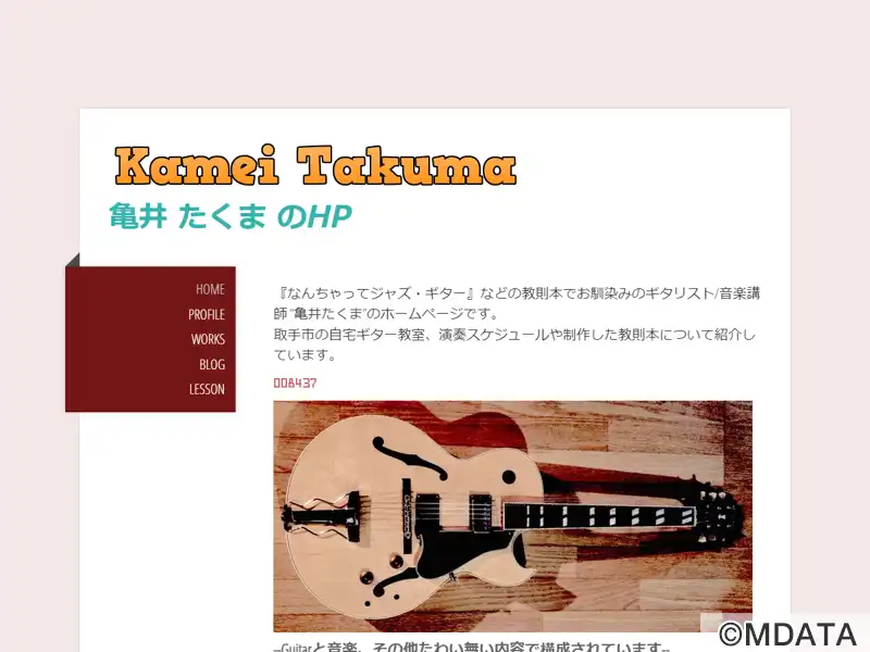 茨城県取手市にある、1999年に開業した個人ギター教室。ジャズ、ロック、ポップス、ブルースなど、様々なジャンルのギターレッスンを提供している。個人レッスンとグループレッスンが用意されている。講師の亀井たくま氏は、ギタリストであり、「なんちゃってジャズ・ギター」、「超実践!ブルース・ギター塾」など多数の教則本を執筆している。初心者から上級者、プロ志向まで、幅広いレベルを対象に楽しいレッスンを行っている。