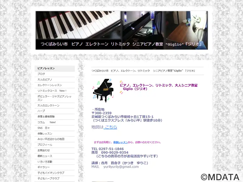 茨城県つくばみらい市のTXみらい平駅から徒歩10分にある、ピアノ、エレクトーン教室。子供からシニアまでを対象に、ポピュラー、ジャズまで、幅広いジャンルの音楽を楽しく学べる個人レッスンを提供している。ピアノやエレクトーンの他、ポップ・ジャズピアノ、ハープレッスン、保育士資格や教員試験の受験対策コース、大人のためのエレクトーンコースもあり、一人ひとりのペースに合わせた丁寧な指導で音楽の楽しさを伝えている。